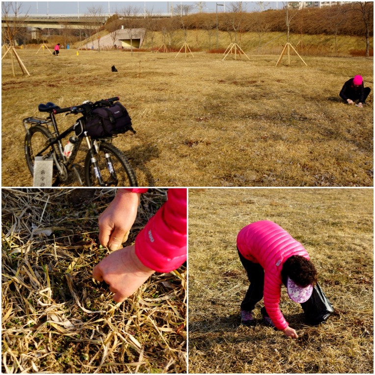 둔치에 눈이 녹자 냉이를 캐는 아낙네들도 만납니다. 아직은 작다고 하네요.