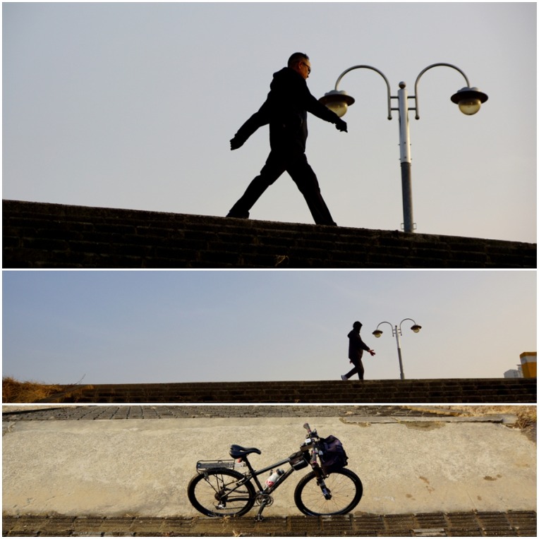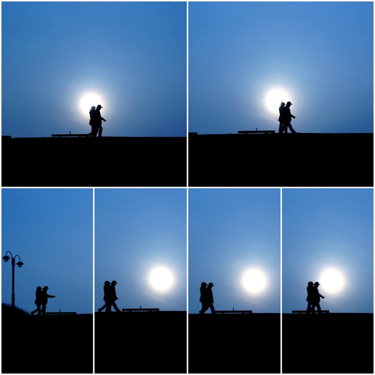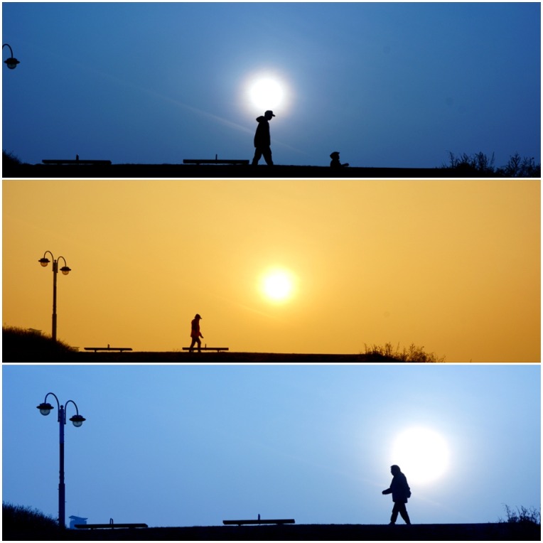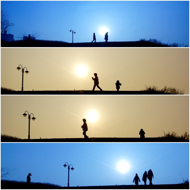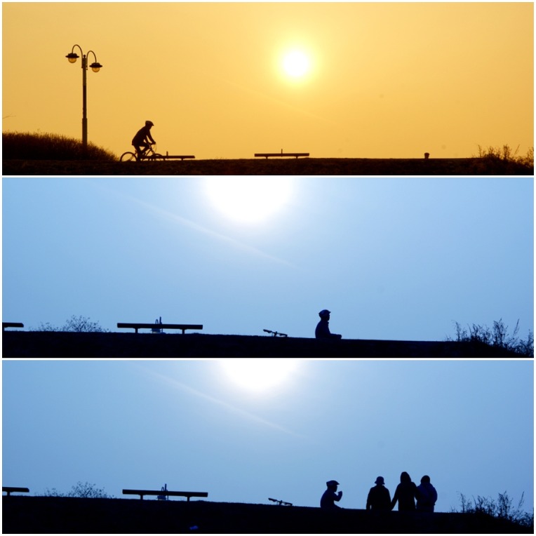 그때 고개를 돌려 위를 바라보다가 지나가는 사람들이 실루엣으로 무언극을 펼치고 있었습니다. 바로 제가 좋아하는 푸른노을에 스쳐가는 사람들이지요. 이때부터 다른 곳 갈 생각을 하지 않고, 해가 넘어가고 있는 순간 까지 숨죽이고 셔터 소리만 요란하게 들렸습니다. 이때 전화벨 소리와 함께 급한 일로 지인이 천호동 쪽으로 온다고 해서 푸른 노을을 뒤로 했습니다. 짧은(3시간) 외출이었지만 홀로 득템이라도 한 것처럼 즐거운 마음으로 서둘러 페달을 밟았습니다.