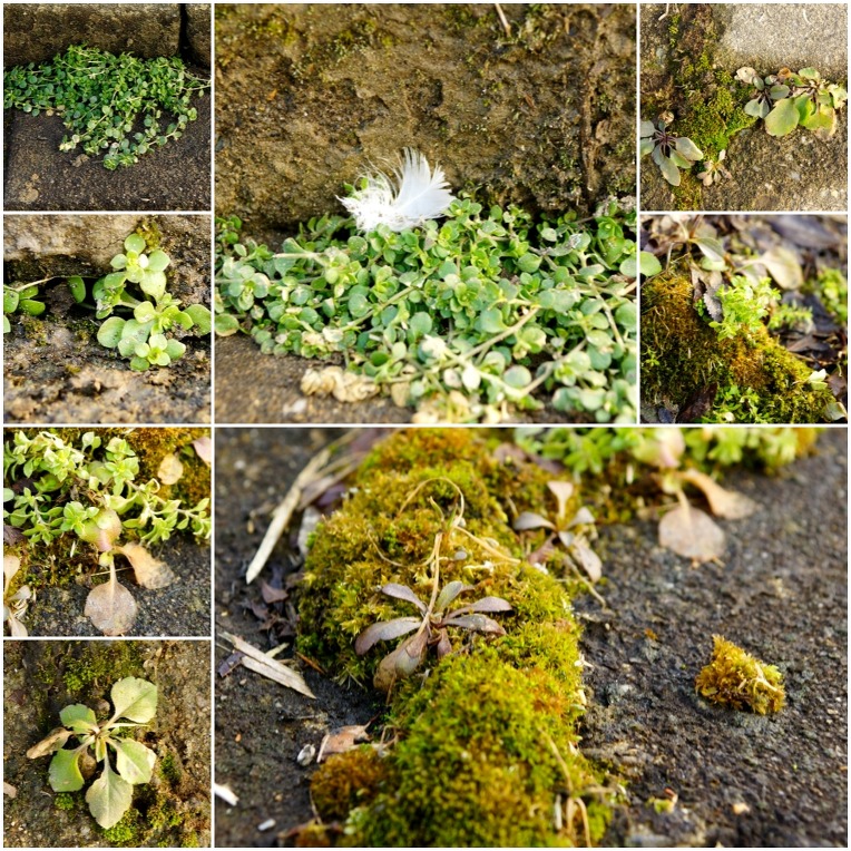 잠실대교 아래 보의 물살도 담고 언덕에 초록빛이 보여 이때부터는 초록사냥에 나섭니다. 사각의 시멘트 벽돌 사이마다 잔설 속에 숨어있던 초록들이 빼꼼하게 얼굴을 내밀고 있었습니다. 어렸을 때 이름도 잘도 기억했는데 이름도 가물가물한 초록생명들에게 카메라로 인사했습니다.