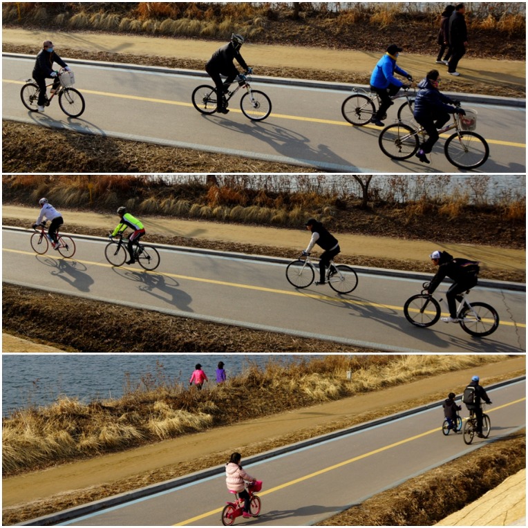 천호동에서 올림픽대교 사이 자전거도로 따뜻한 날씨에 자전거 탄 사람들이 많이 보였습니다.