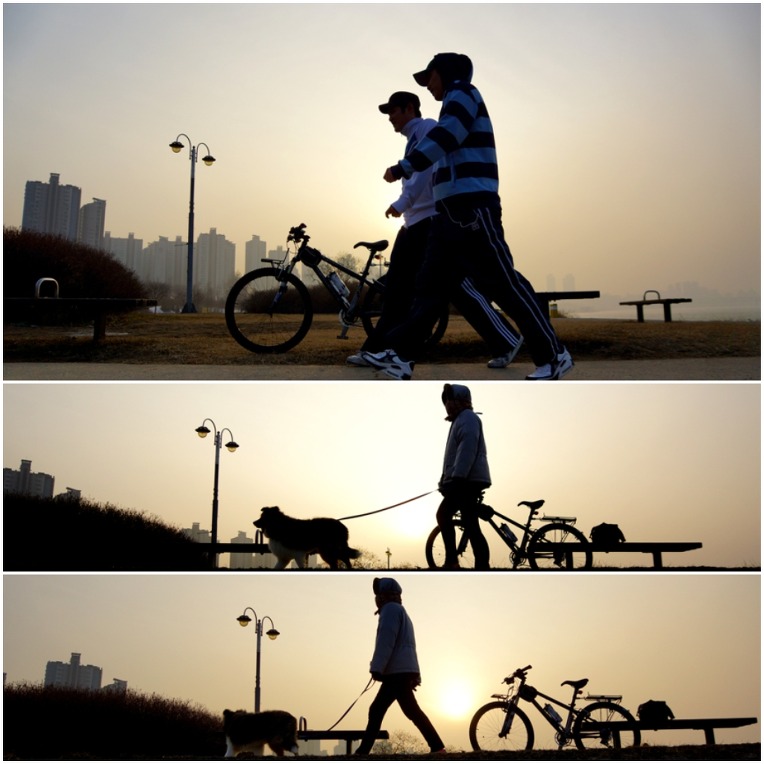며칠 째 장거리 여행의 계획을 갖고 있다가 일이 생겨 못가고 있는 상황에서 오후 늦게라도 자전거랑 함께 사진여행을 떠났습니다. 특별한 장소를 갈 수 있는 시간도 없고 성내둔치에서 그만 나물캐는 아낙네들의 모습에 빠져 시간을 보냅니다. 그리고 평소 자전거로 가지 않는 잠실 둔치 강기슭까지 내려가 새로운 풍경이라도 있을까 서성이다 마침 아름다운 연인과 편찮으신 할머니를 부축하고 있는 초등학생을 만나 이야기도 하고 흐뭇한 사진도 담았습니다.