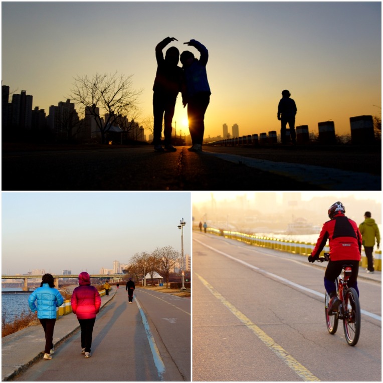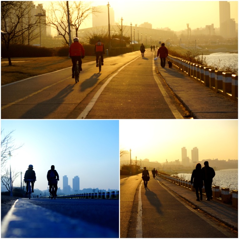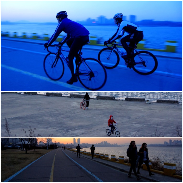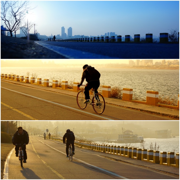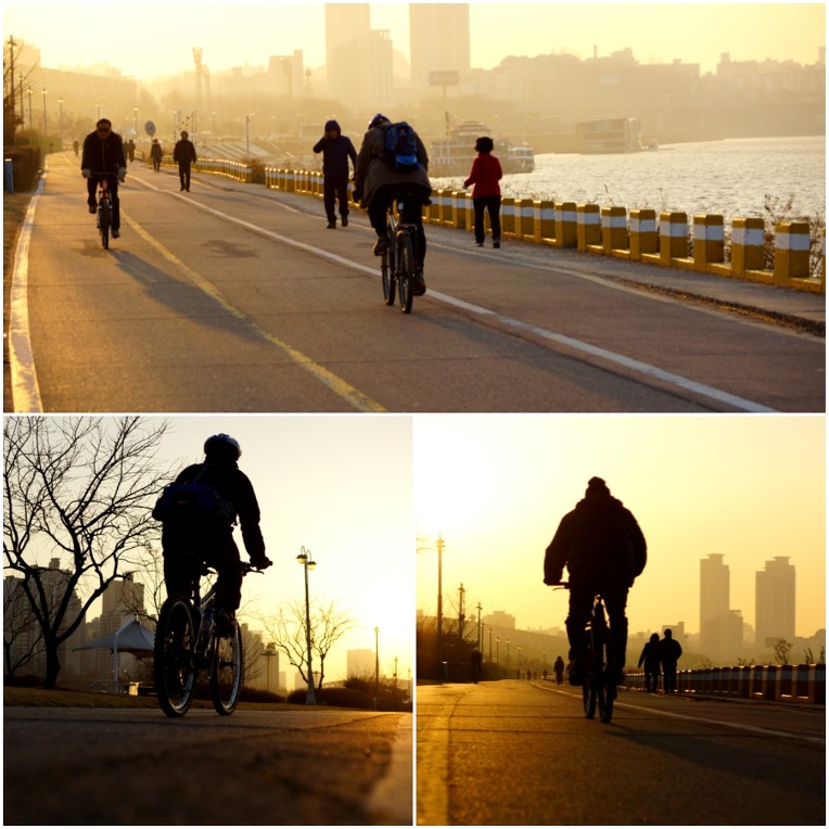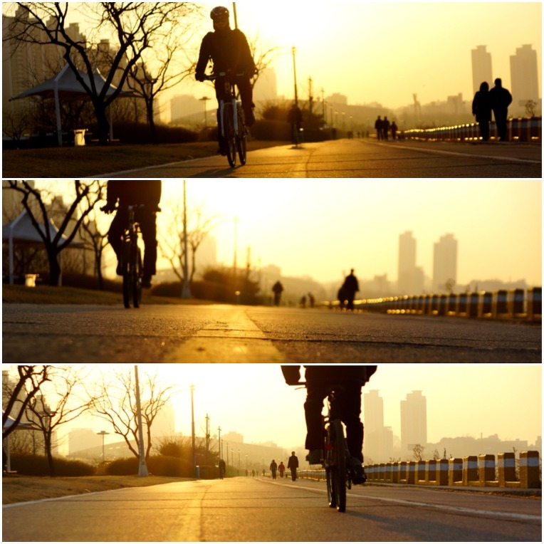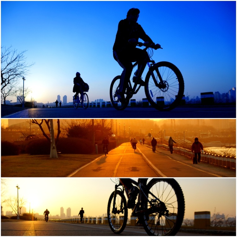 [호미숙 포토갤러리]황혼 무렵 자전거 탄 풍경(잠실 선착장, 광나루 둔치)