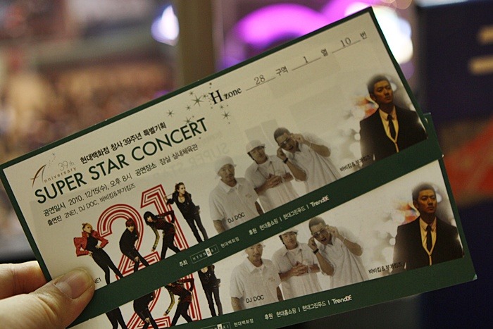 2010년 12월 15일 잠실실내체육관에서 현대백화점 39주년 기념 슈퍼스타 콘서트가 열렸답니다 현대백화점 블로그 '백화점 얼마나 아니' 에서 콘서트 티켓이 당첨이 되어 딸과 함께 다녀왔답니다 15일 즈음에 날씨가 엄청 추웠었습니다 진짜 꼼짝하기 싫었던 그날 저녁시간에 딸과 저는 얼굴과 몸을 꽁꽁 싸매고 잠실실내체육관으로 갔습니다