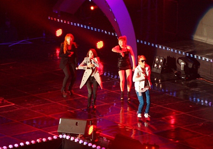 산다라박, 씨엘, 민지, 박봄 4명이서 각자 다른 의상을 입고 각자 개성을 표출했지요 울겨울 유행이 되려는지 2NE1 거의 모든 멤버가 오렌지색 염색을 했더군요