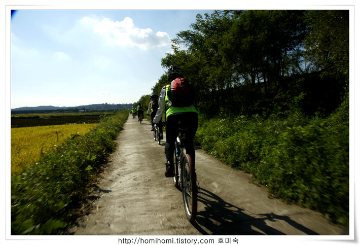 좁은 농로길 따라 달리는 동안 자전거 탄 아이들이나 어른들이나 모두 가을을 만끽하며 여유롭게 페달을 밟아 아무나 쉽게 갈 수 없는 땅, 민통선을 달려 14km를 달렸다