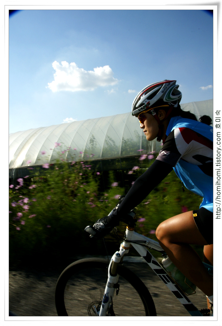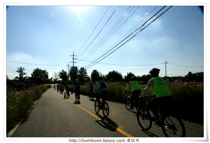 벌써 목적지에 다가와 오네요. 코스모스가 피어있는 아름다운 꽃길을 달리고