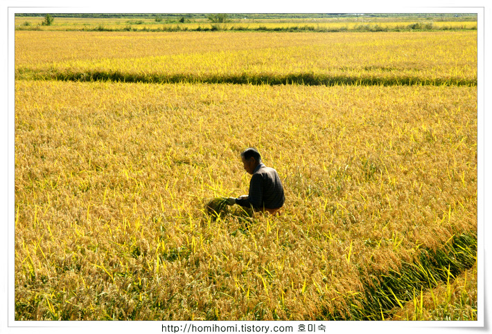 민통선의 안 쪽, 황금으로 색을 입히던 풍요로운 가을 들녘은 지난 태풍에도 폭우에도 견뎌내어 벼이삭 무게를 더해 고개를 숙이고 있었다