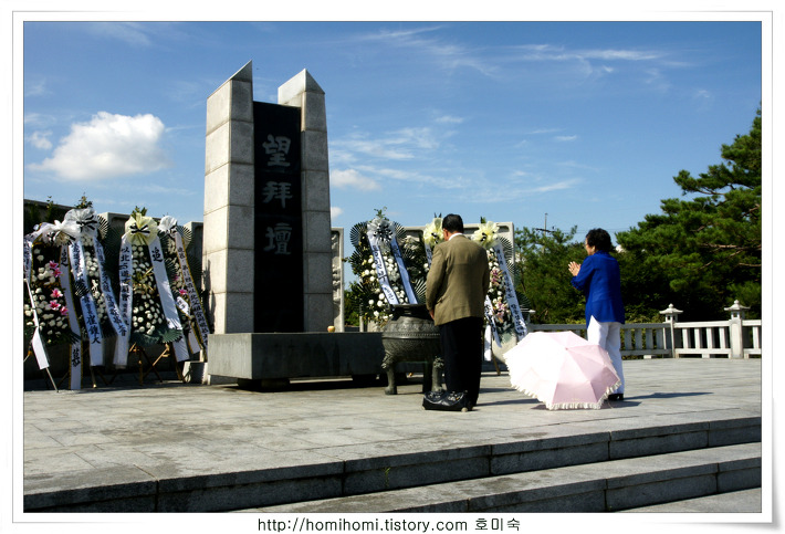 망배단에서 향을 피우고 기도를 드리던 노부부 올해 연세 83세 어르신은 전쟁 때 부모님과 형제를 모두 북에 두고 친구 따라 남한 땅을 밟은 후로 이렇게 시간이 되면 망배단을 찾아 그리움을 대신하신답니다 지난 추석에 찾으려했지만 물폭탄으로 올 수 없어 오늘 오셨다고 하시네요 그리움의 땅, 고향땅을 바로 앞에 두고도 갈 수 없는 한 서린 삶 통일을 기원하지만 뼈 속까지 이념의 차이로 통일이나 가능할 지 걱정하시며 이번 이산가족 상봉 불발에 대한 북한 측에 대하여 불만을 토로하셨습니다 노부부의 염원이 이뤄지길 바래봅니다
