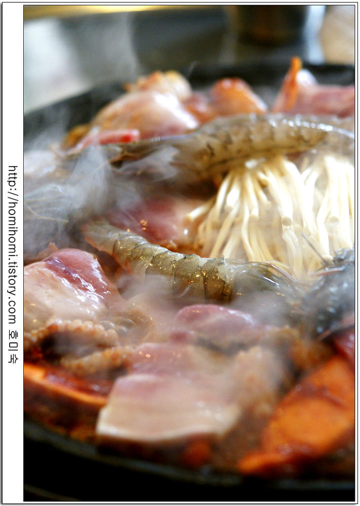 우리가 주문한 메뉴는 바로 쭈삼새로 쭈꾸미를 비롯하여 삼겹살과 새우 모듬이지요