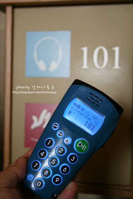 입장권은 입장과 동시에 입구에 있는 안내데스크에서 이런 단말기를 받으실 때 제시하셔야 하므로 잘 보관하셔야 합니다. 이 단말기는 방마다 입구에 적힌 방 번호를 입력하면 해당 방에 대한 설명이 한국말로 안내가 된답니다.
