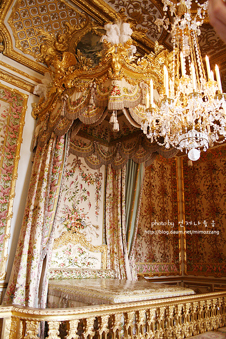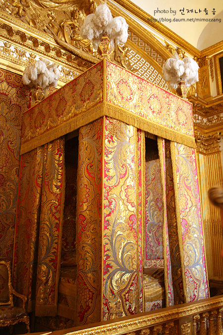 이곳은 왕비의 침실로, 왕의 침실과는 달리 정말 화려합니다. 왕의 침실과는 대조적으로 모든 것이 화사하고, 많은 악세사리들이 달려있는 걸 볼 수 있습니다. 이곳에서 왕비의 출산도 이루어졌다고 하네요.