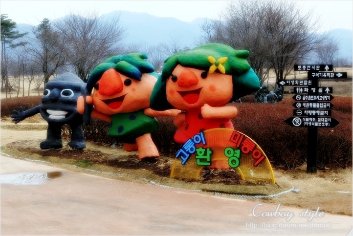 축제장 입구에 들어서면 반가이 맞아주는 축제의 마스코트 고롱이와 미롱이 그리고 왼쪽의 저 친구는 작년엔 없었는데 신석기시대에서 놀러 온 친군가?