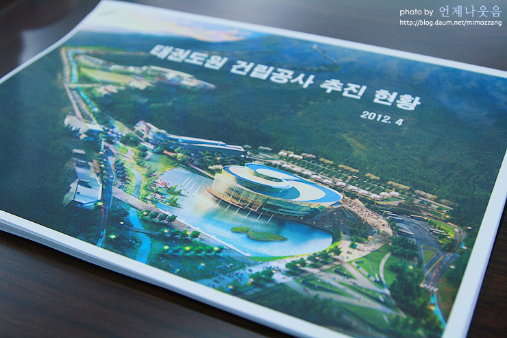 아름다운 무주의 백운산 자락에 한창 건립중인 "태권도원"의 현장을 둘러보기에 앞서 현장사무소에서 간단한 브리핑을 들을 수 있었는데요, 백운산 자락을 따라 펼쳐질 9곡 8경의 자연경관과 어우러질 태권도원의 늠름한 모습이 벌써부터 뿌듯함을 느끼게 했습니다.